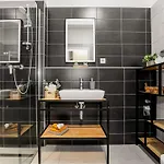 Dieses Apartment verfügt über ein Badezimmer mit Handtüchern. Außerdem gibt es hier eine getrennte Toilette und eine Dusche.
